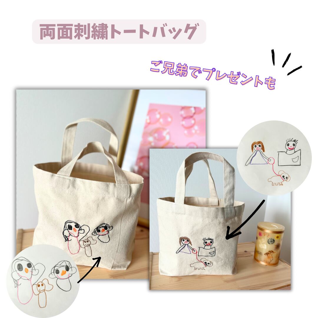 刺繍似顔絵ハンカチ&刺繍トートバッグのセット。