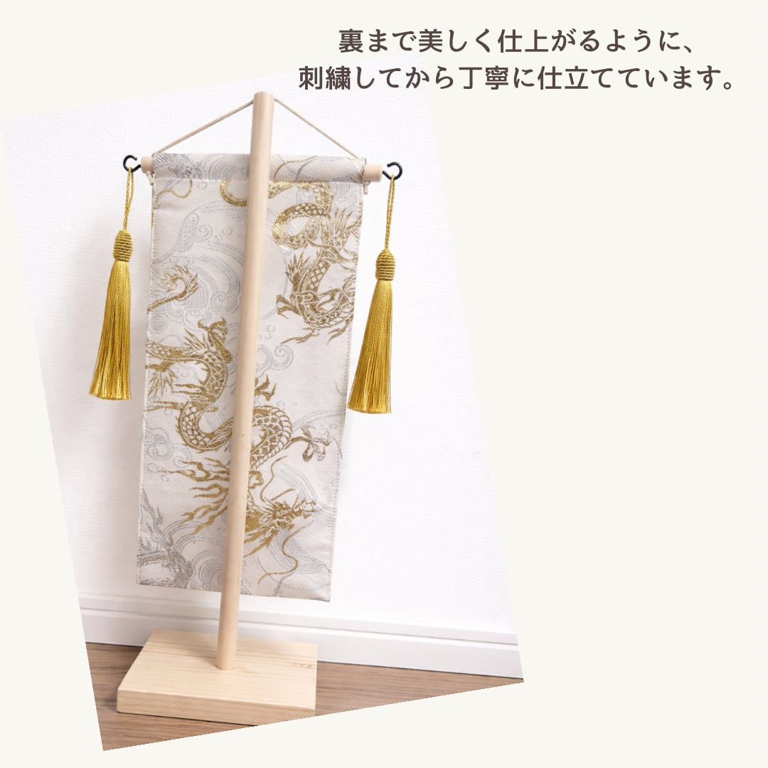 刺繍名前旗 高級生地金らん龍柄 木製スタンド付 名入れ 端午の節句