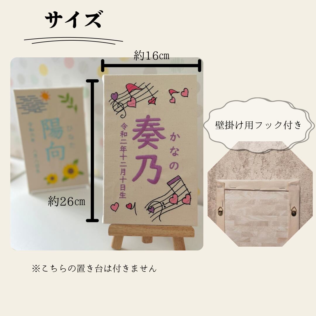 お子様のお名前や生年月日を美しい刺繍で残せる、特別な命名書です。 大切な想いを込めてお子様のお名前を刺繍し、かけがえのない思い出としてお手元にお届けします。