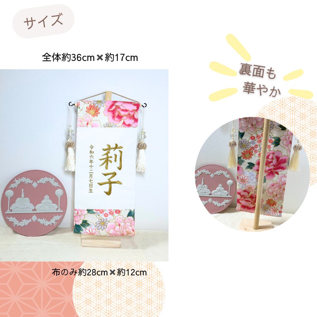 命名書にも〜ひな祭り刺繍名前旗〜和柄①〜木製スタンド付き